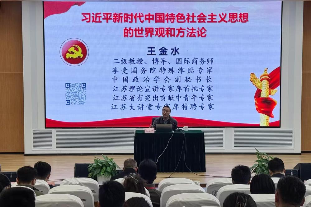 本次培训有幸邀请到了中共江苏省委党校的王金水教授,王教授是科学社会主义领域的权威专家。他为全体党员干部带来了“习近平新时代中国特色社会主义思想的世界观和方法论”主题讲座。王教授的讲解深入浅出,既有理论的高度,又有实践的深度,让全体党员干部受益匪浅。在讲座中,王教授结合实际案例,生动地阐述了习近平新时代中国特色社会主义思想的核心要义和实践要求,使党员干部们对这一思想有了更深刻的理解。