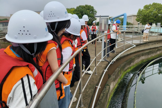 行程终点,志愿者们探秘国邦污水处理厂,沿着“进水预处理→生化反应→深度处理”的全流程动线,目睹污水从浑浊到澄澈的“涅槃重生”。格栅机截留杂质、曝气池激活微生物、膜处理系统精准过滤等,这一道道工艺如同生态修复的“魔术师”,让污水“洗尽铅华”,重归自然。