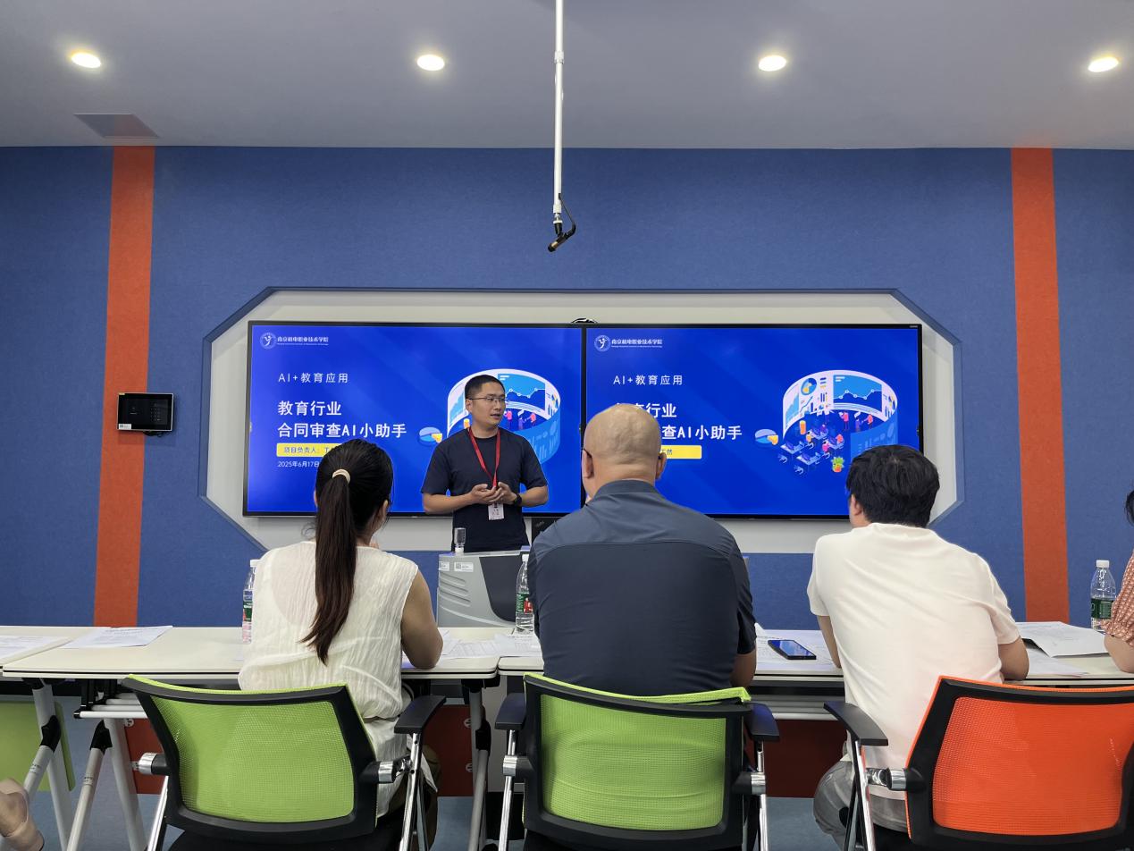 在创意设计组,电子工程系教师卢克团队的《安聆校园-校园声学安全物联网系统》重构校园安全生态,系统通过“非视觉化”监控模式,在尊重学生隐私权的基础上,为隐蔽空间提供全天候守护,降低暴力伤害的严重性。信息工程系学生姚章甫团队的《非遗板鹞风筝包装设计》以“非遗传承,匠心永续”为核心,将中式美学与板鹞风筝文化深度融合,打造兼具文化厚度与视觉感染力的沉浸式体验载体。创意设计“AI+教育”组中,机关一支部教师丁然团队的《教育行业合同审查AI小助手》基于本地部署的 deepseek和dify平台,采用本地化部署方式,所有数据处理与存储均在本地完成,从根源上杜绝了数据外泄的可能性,严格满足教育行业对数据保密的高要求,为学校合同信息安全筑牢坚实防线。
