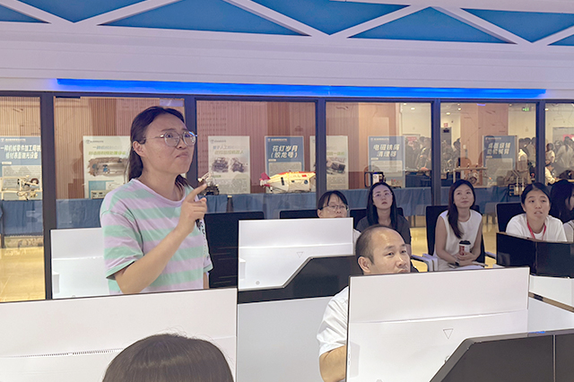 最后,全体参会人员在卫星测控中心中观摩了精密仪器设备与虚拟仿真系统。在黄威老师的细致讲解下,教师们系统了解了卫星信号接收、数据处理等核心技术环节,还近距离观察了各类精密仪器的工作原理与实际应用场景。教师代表亲身体验了长征火箭发射互动模拟项目,沉浸式感受科研实践的独特魅力。现场观摩不仅丰富了教师们的技术认知,更启发大家从实际科研场景中挖掘专利创新点,为后续推动教学与科研深度融合奠定了坚实基础。