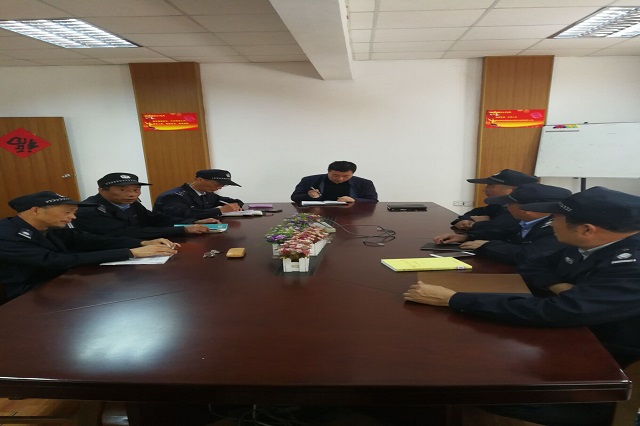 4月19日,保卫处在勤政楼三楼会议室召开月度工作例会,全体警卫队队员参加,会议由警卫队队长王俊迎主持。