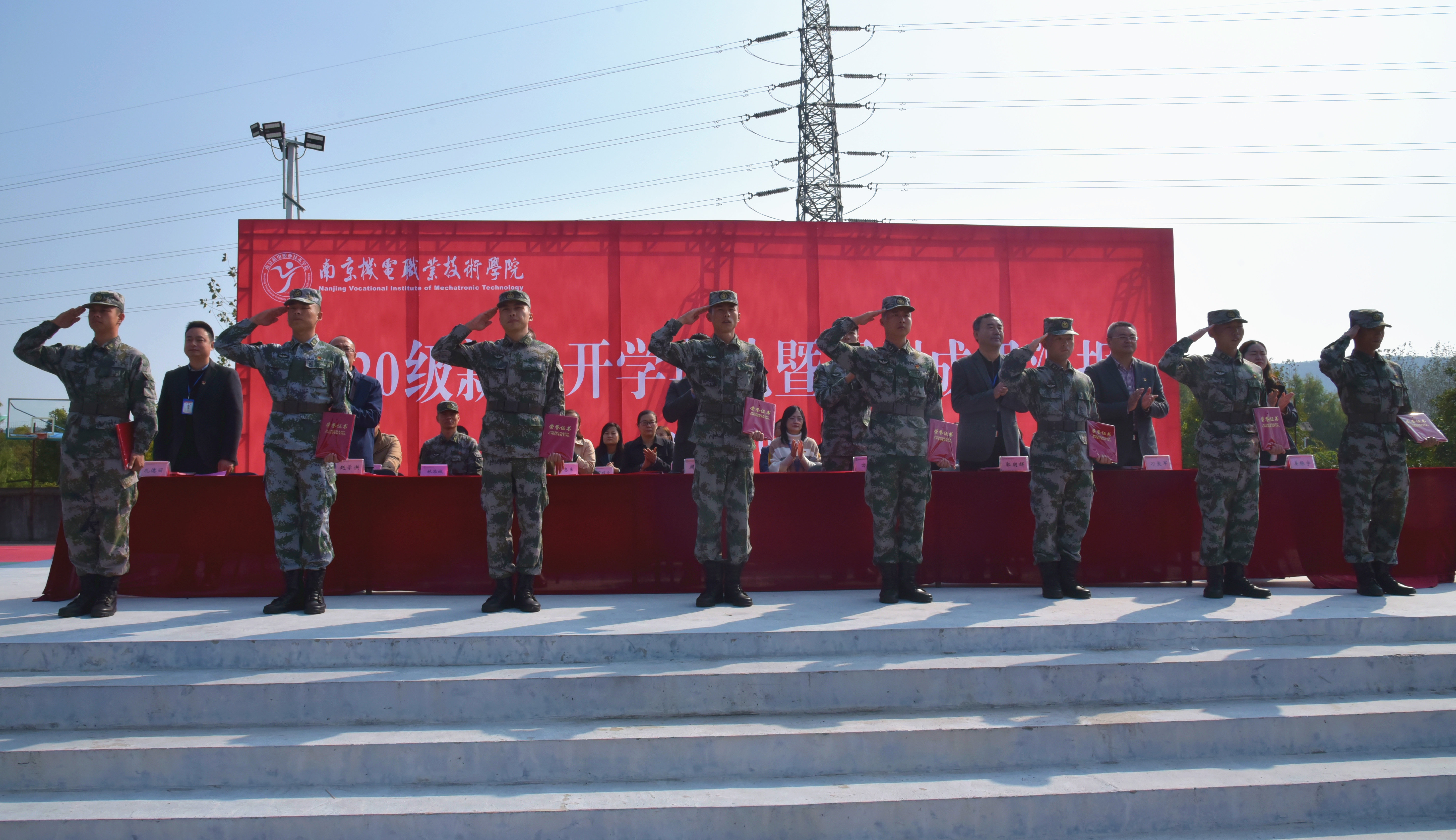 党委书记、院长周庆礼为2020级新生军训成果汇报大会暨开学典礼致辞。他代表全体师生员工对2529名新生的到来表示热烈的欢迎。他指出,在这个不平凡的年份里学院迎来了“生于非典,考于新冠”的莘莘学子,他希望带着这段特殊经历的学生们能够在南京机电获得新的认知和新的成长。周院长借学院使命中的自信二字送给大一新生。希望他们坚定精忠报国的信念;秉承自强不息的校训;发扬敢为人先的创新精神;不负韶华逐梦前行,和学院一起自信面向未来。