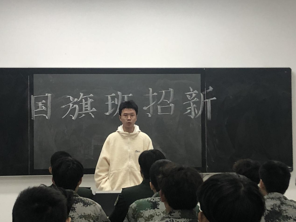 11月11日晚八点,国旗班组织部分新生在博学楼104教室开展21级纳新面试工作。