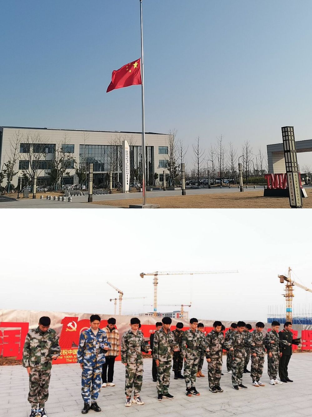 活动现场庄严肃穆,伴随着嘹亮的号令声,国旗护卫队迈着整齐的步伐,护送着国旗走向国旗台。国旗班升旗人员高唱国歌,五星红旗冉冉升起,随后在全体人员的静默中降半旗,表达对死难者的沉痛哀悼!