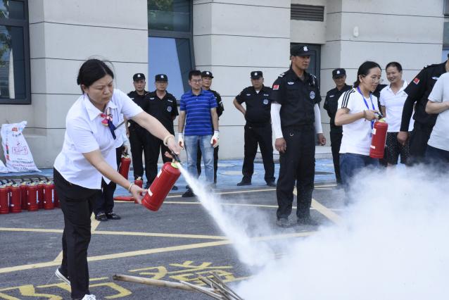 在最后灭火实战演练中,参培人员牢记干粉灭火器的“提、拔、握、压”使用口诀,一轮轮有序的体验灭火。