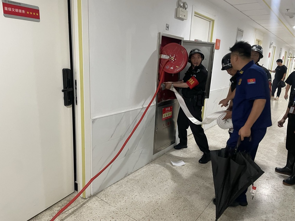 教学培训中,监督管理专家以学校现有建筑图纸为教具,现场检查了学生宿舍、食堂、弘德楼和弘毅楼。询问学校按照“三管三必须”要求落实责任情况,检查消防安全管理情况,常态化开展网格化防火巡查情况和宣传教育、员工培训、重点部位管理等。