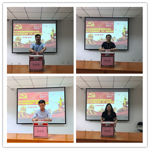 在中国共产党成立99周年之际,学院党委在弘德楼107会议室举行“乐投线上平台(集团)官方网站共产党员爱心助学(困)金捐款仪式”。党委工作部主任周启国、各系部书记及支委委员参加了捐款仪式。