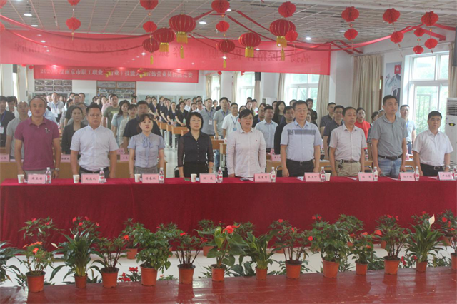 7月28日上午,南京新工投资集团职工职业技能竞赛(培训)基地揭牌仪式暨南京市二级首饰营业员技能大赛在学院中央门校区报告厅举行。市总工会党组成员、副主席陈慧男,新工投资集团党委副书记、工会主席吴启宁,新工投资集团党委委员、总经济师洪薇,学院党委书记、院长周庆礼,学院党委委员、副院长孔德丽,学院党委委员、工会主席姜振宇及市总工会、新工投资集团有限公司相关领导,新工集团各直属企业工会主席及负责培训工作领导出席本次活动。