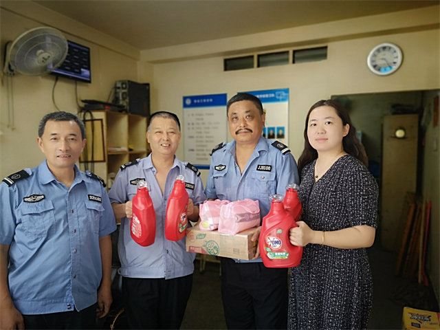 8月20日,学院党委委员、工会主席姜振宇,工会副主席张清松等一行走访慰问了中央门校区警卫队、值守人员,沧波门校区学工处、财务处、警卫队和高淳新校区项目现场值班人员,为他们送去了降温饮料和洗护用品,在感谢值守人员辛勤付出的同时叮嘱他们在工作中要注意防暑、保重身体。