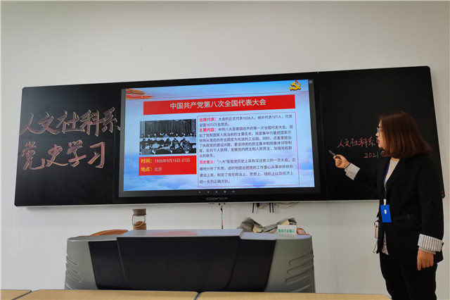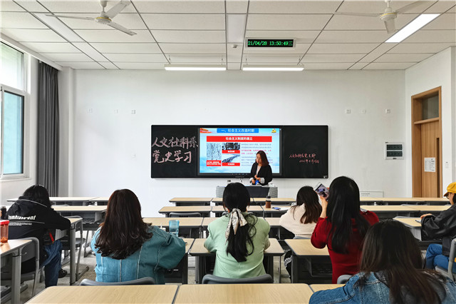 根据学校党委统一部署,深入贯彻习近平总书记在党史学习教育动员大会上的重要讲话精神,激励我校广大教职工坚定理想信念、立足岗位、勤奋学习,4月28日下午,人文社科系党支部全体教职工在博学楼110教室开展了第二次党史学习教育,本次学习由思政中心赵珊珊老师主讲。