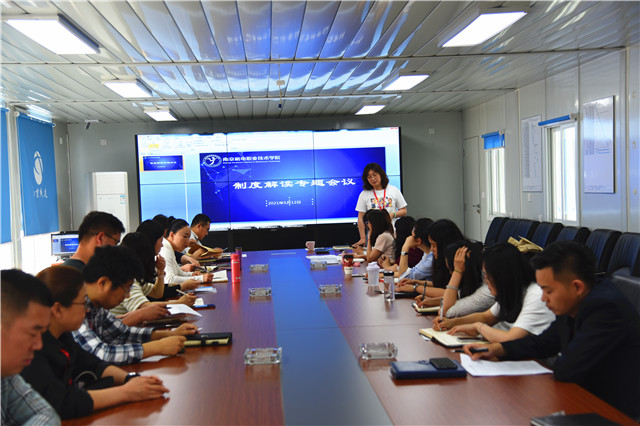 活动由机关一支部书记、纪检监察室主任彭璐组织。彭璐指出本次制度解读专场活动主要目的是进一步学习学院近期集中修订、新增的26项制度,强化教职工制度意识,促进规章制度有效落实,营造“人人学制度、人人懂制度、人人守制度”的良好氛围。