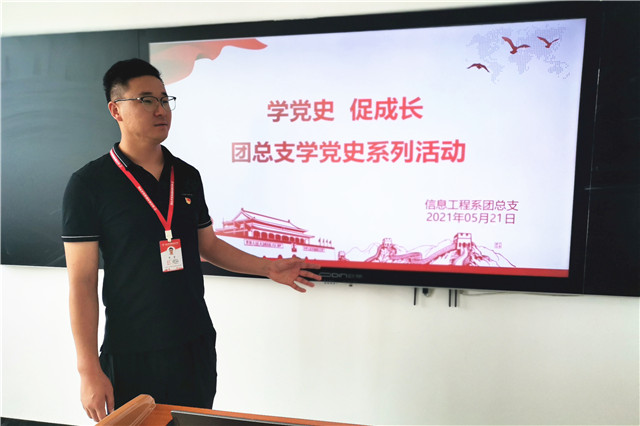 百年大党薪火相传,青年学子赓续接力。信息工程系团总支积极响应系党支部进行“学党史、强信念、跟党走”学习教育活动的号召,在全团广泛开展“学党史、强信念、跟党走”学习教育活动,5月21日中午,信息工程系团总支开展了以“百年青春心向党,团结青年永奋进”为主题的党史学习教育团日活动。