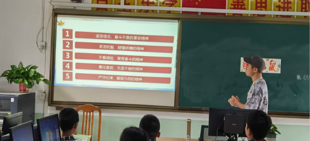 宣讲主题班课上,主讲人陈童和龚燕明同学,通过一个个生动有趣的小故事向港口小学的青少年讲述了长征过程中红军四渡赤水的机智、飞夺泸定桥的英勇、过雪山时的艰难、过草地时的坚强以及最后三军会师的壮观景象。形象的表述了“长征精神”的四大主要内涵——乐观主义、英雄主义、创新胆略、集体主义。让青少年认识并感受“长征精神”,对于他们今后的学习、生活都有着重大的指导意义。