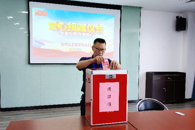 根据《学校党委2020年工作意见》,学校将以“党的政治建设为统领,突出政治领导力、思想引领力、基层组织力、党员先进性,着力提高学校党建工作科学化水平,努力开创各项工作新局面”,为增强学校党员的暖心意识,自动化工程系党支部于7月6日中午在育德楼303会议室举办暖心捐款活动,出席本次活动的有学校党委委员、副院长刁爱军、系党支部书记高水冕、主任范世祥、副主任张海红、全体党员及部分教师代表,党支部书记高水冕主持了本次活动。活动自发布之日起便得到全系教师的积极响应,至活动结束共筹集善款3400元,此次捐款所得将全部用于资助学校家庭贫困学生生活及学习。