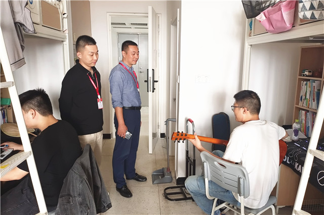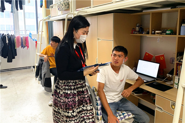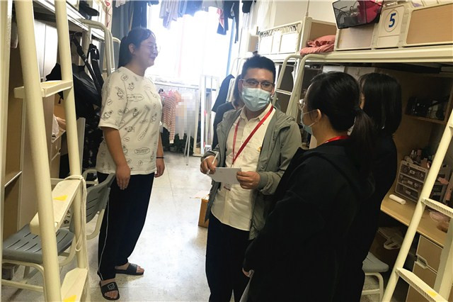 此次宿舍走访活动涉及润泽苑、静思苑、思齐苑三栋楼,老师们三到四人为一组进行调研,全体同志佩戴工作牌,党员同志佩戴党员徽章。旨在深入宿舍调研学生返校后生活、学习等情况,有针对性的了解学生上网课、对于学院疫情防控要求是否了解等情况。此次走访活动在学生中反响热烈,同学们深感家的温暖,表示在即将开启的新学期中,要脚踏实地,努力奔赴星辰大海。