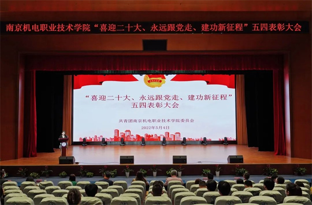 为表彰先进、树立典型,在建团百年之际充分发挥先进典型示范引领作用,进一步组织动员全校团组织和广大团员、团干部在实践中展现青春担当,以实际行动迎接党的二十大胜利召开,我校团委5月4日在星梦馆多功能厅召开“永远跟党走、建功新征程”五四表彰大会。学校领导、学工处领导、各职能处室领导、各系党支部书记、团总支书记、辅导员代表、获奖集体和学生代表出席了本次会议。会议由团委金慧敏老师主持。