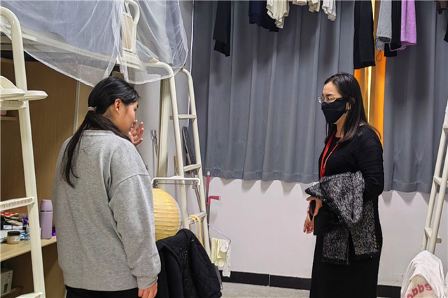 各位党员老师进入宿舍后,认真仔细地检查了学生宿舍的卫生状况,并督查是否有使用违规电器的情况,告知学生不要在宿舍等禁烟场所吸烟,要自觉维护宿舍的环境卫生,共同创建一个安全文明的学习生活环境。此外,各位党员老师也从思想、学习、生活、心理健康等方面和学生进行了交流,了解了学生近期的学习生活情况。、