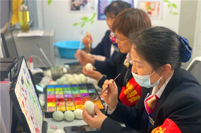 本次活动在学校机关二支部老师和宿管阿姨的带领下,在宿舍楼下向同学们赠送。老师和同学们用清水将鸭蛋煮熟,经冷水浸过,然后由宿管阿姨和人文系的同学们一起对每个鸭蛋进行了绘画,最后装在用彩色丝线或编成的网兜里,同学们绘画的鸭蛋更是样式精美,每个都独具一格。当同学们收到精美的绘画鸭蛋时,脸上都洋溢着喜悦的表情,对此民俗也是充满了好奇,积极参与了了解。