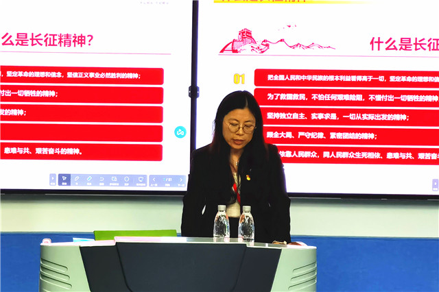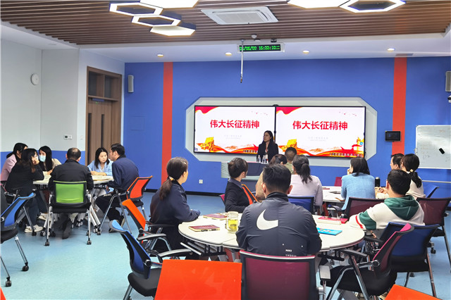 5月9日下午,信息工程系党支部组织开展了“弘扬伟大长征精神”的政治学习活动,全系教职工在博学楼409室参加。本次党课由卞春花同志主讲,她用深厚的理论功底和实践经验,为大家深入解析长征精神,讲述其历史背景以及它跨越时空、民族影响力的特点。她结合陈树湘、吴焕先等同志的英勇事迹,阐释了“长征精神”的概念和伟大长征取得胜利的原因。长征精神不仅是长征胜利的基础,也是战胜一切困难的重要动力。每一代人都有自己的长征路,每一代人都应该勇敢前行。