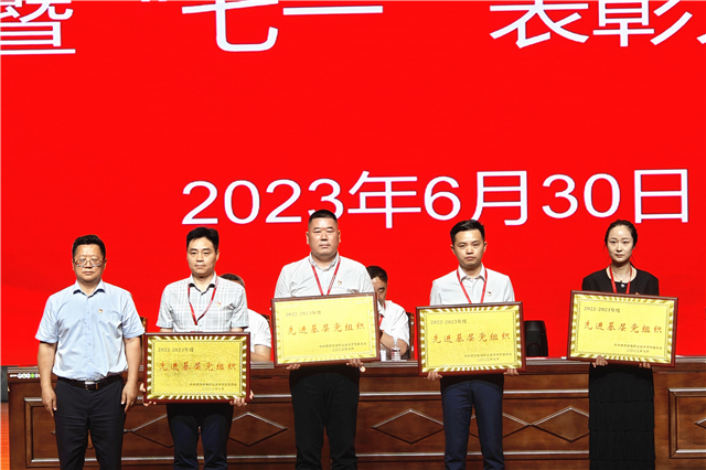 党委领导为获得“十大育人示范岗”“优秀共产党员”“优秀党务工作者”“优秀党支部书记”“先进基层党组织”荣誉称号的教职工及单位颁奖。