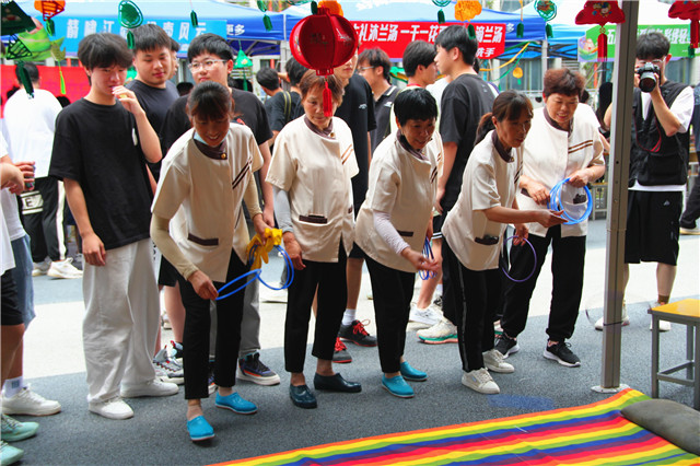 投壶游戏具有上千年的历史传统,是中华民族宝贵的非物质文化遗产。射五毒寓意着“强身健体”,通过射五毒来提醒人们注意防范毒虫,也有无病无灾的美好祝愿。同学们通过投壶、射五毒、套圈等游戏角逐激烈,获得参与端午民俗体验活动的门票。师生们寻找角度,稳住心态,瞄准投射,活动现场气氛热烈浓厚。
