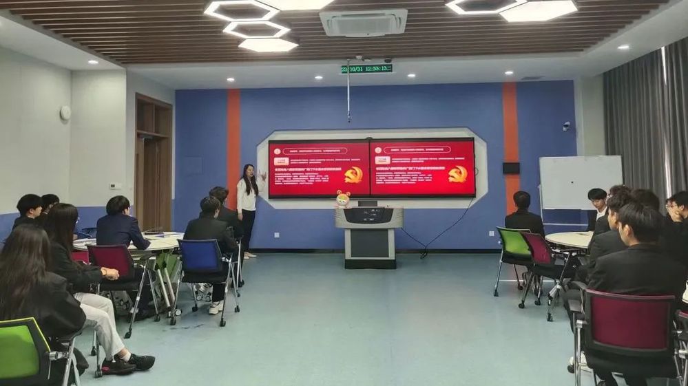 党支部副书记陈雪做开班第一讲《中国共产党的光辉历史》。陈雪要求所有积极分子要思考清楚:为什么要入党,入党以后要干什么。陈书记从中国共产党历史发展的轨迹、百年奋斗的光辉历程展开,带领入党积极分子探寻中国共产党的成功奥秘。陈书记还嘱咐同学们要不忘初心、牢记使命,要以党员标准来要求自己,积极努力参加实践活动来不断提升自己。