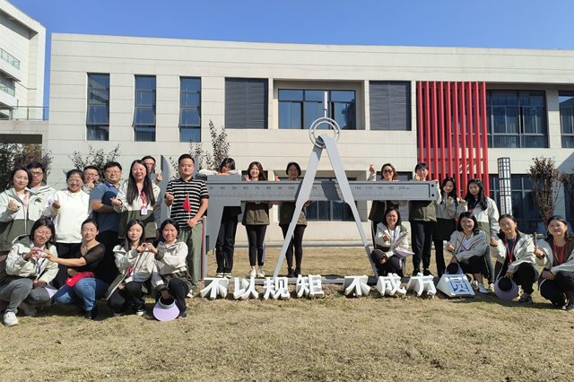 “万世工人祖,千秋艺者师”,以“鲁班文化”为主题的精神文化广场采用简洁的设计体现其有机、生态的一面。广场的整个规划布局为中轴线布局,中心广场融入鲁班元素符号—“鲁班锁”形象雕塑,两侧景观分别以“鲁班人物”和“鲁班精神/工匠精神”设计布置。支部成员们齐聚鲁班锁雕塑下,感受鲁班的卓越贡献,传承他的伟大精神,追求卓越、精益求精,让机电师生在工艺和创造中突破自我!