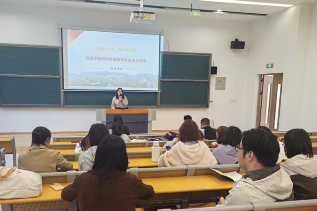 赵姗姗老师围绕习近平新时代中国特色社会主义思想的创立背景、重大意义、主要内容、历史地位等方面展开讲解,并就如何学好用好习近平新时代中国特色社会主义思想做了详细解读。