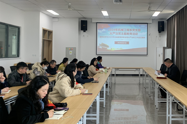 3月15日,机械工程系党支部在笃行楼401集中学习2024年全省教育工作暨全面从严治党工作会议精神,本次学习由机械工程系党支部副书记李杰主讲,支部全体党员教师参加学习。