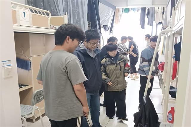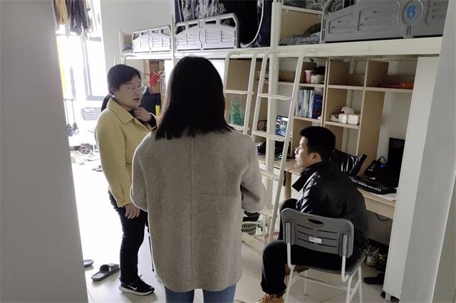 为贯彻落实立德树人根本任务,建立健全机关二支部教职工深入基层、密切联系学生的工作机制,深入推进“一站式”学生社区综合管理建设,根据机关二支部《关于教职工联系宿舍的工作安排》,2024年4月8日在支部各楼层长的带领下,全体支部同志深入学生宿舍,及时了解学生思想、学习、生活、发展等实际问题,更好促进与学生之间的交流。
