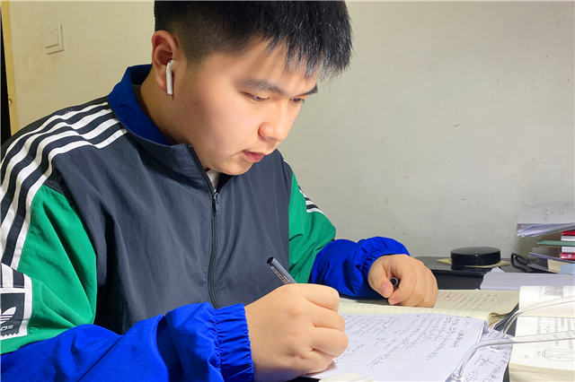 戚珉恺的短期目标是通过专转本考试进入南京信息工程大学继续深造。有了前进的目标,就有了强大的动力,他每天在备忘录里规划好当天的学习计划,数学基础薄弱的他从头开始学起,每天用定量的习题来巩固。