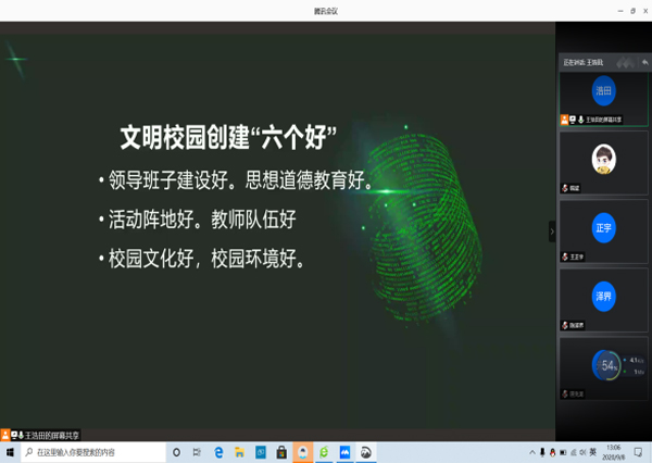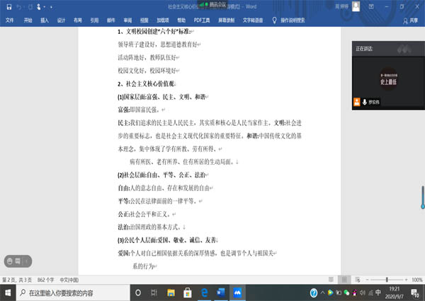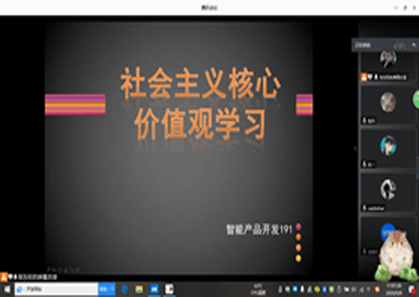 本次活动主要围绕社会主义核心价值观体系,为校园文明建设推进工作营造了浓厚氛围。各支部配备一名党员老师进行活动指导,团支书负责线上讨论会召开,并带领同学们在线学习社会主义核心价值观,引导同学们进行线上讨论。讨论会上同学们都积极的进行了讨论,或立足诚信友善,倡导立德修身;或着眼于爱国敬业,践行自强不息的精神;或践行自强不息的精神,努力实现中国梦。在讨论会的最后,各支部的活动指导老师进行了总结,并对后续学习进行了指导和要求。