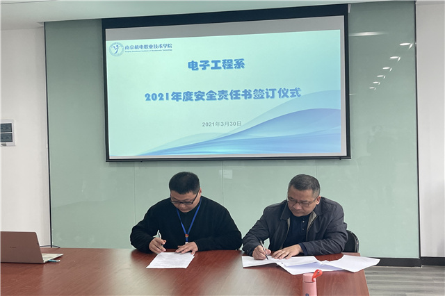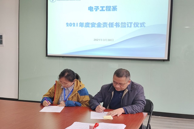 为认真做好学校安全管理工作,切实将安全抓实抓细。3月30日下午,电子工程系全体教职工在育德楼303举行了2021年度安全责任书签订仪式。