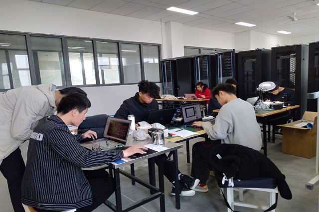 2020年12月份接到江苏省嵌入式技术应用开发大赛通知,经历了比赛选拔、比赛训练、正式比赛三个过程。本次竞赛在系部领导的统筹领导下,对学生比赛安排了精心的训练计划,由刘庆华老师指导嵌入式程序编程,由郭晓凤老师指导硬件焊接调试部分。学生首先进行了第一阶段的基础程序、电路识别学习训练,然后是第二阶段的小车与每个标志物的通信测试训练,最后是第三个阶段的集中训练,进行主车和从车的联合调试。经过三个月的训练,于4月9日正式比赛,经过8个小时的赛场比拼,最终我系学子组成的团队在25个高职学院激烈的竞争中获得了三等奖,在获得三等奖的团队中排名第三。