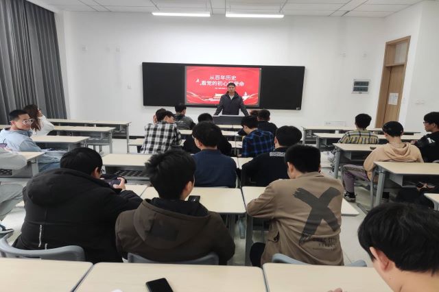 建党100周年之际,为牢记党的初心和使命,2021年4月19日下午,电子工程系团总支在思学楼113举行了新思想公开课,来自团总支的近20名同学参加了公开课,此次公开课由秘书长张国鑫主讲。