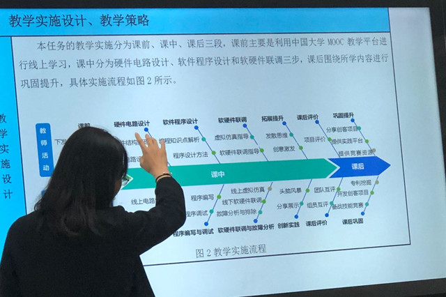 本次教研活动首先由网络与通信教研室郭老师分享了去年的参赛作品,参赛课程是《单片机技术与应用》,分别从人才培养方案、教材、参考教案、课程标准、培养方案、实施报告、教学视频几个方面进行介绍。一、人才培养方案中,涉及到参赛课程的内容部分需要标注颜色。二、上课教材的封面、目录、相关内容扫描上传。三、课程标准要与人才培养方案想统一。参考教案总共16个学时,首先是整体教案分析,对本课程中是对整个模拟发射火箭系统设计任务进行任务梳理划分,然后是教学实施设计,分为课前、课中和课后,分为教师活动和学生活动,通过预习了解学生的难点,然后调整教学过程,课后总结。然后是8个任务的教案。总体是我们学校的模板,故事引入、实施过程。四、实施报告同样16个学时,总共在5000字之内,里面要结合教学思路图、课程实施过程中的图片。五、教学方法有慕课、学习通、程序编写软件Keil、单片机开发板。动态故障库:学生上课时容易出现的问题,解答后形成二维码放在后面,学生通过扫码可以知道答案,还有动态金点子库等。六、教学视频。总共三位老师,在智慧教室,总共40分钟,录像机是固定的,只能拉近,视频不允许剪辑。
