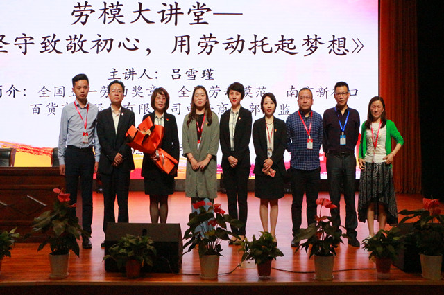 讲座中,吕雪瑾分享了习近平总书记在全国劳动模范和先进工作者表彰大会上的讲话精神,从“苦练内功,做追求极致服务的专家型销售状元;精准发力,做聚合正能凝聚人心的党支部书记;承启未来,做实体商业网络服务的弄潮儿;大爱无疆,做弘扬新时代主旋律的带头人”等四个方面总结了自身二十多年的工作心得。她强调,劳模应该发挥引领辐射作用,善于提炼经验做法,做好传帮带,始终保持创新意识;同时,她号召同学们将个人成长与国家、社会和行业的发展紧密结合,力争成为“以劳动托起中国梦”的社会主义建设者和接班人。