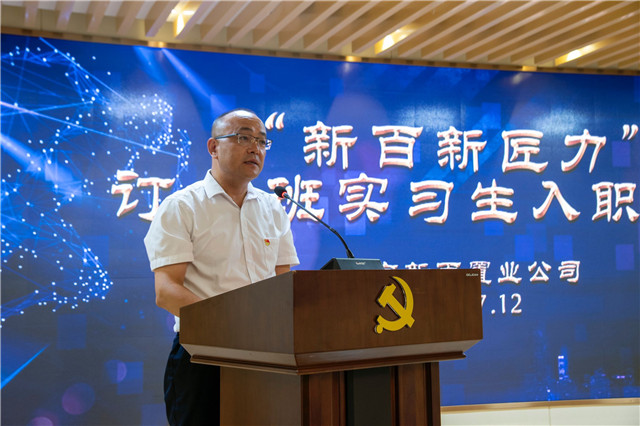 周总裁代表集团对新入职大学生加入新百大家庭表示欢迎,并从公司发展历史、生产经营情况、行业地位、发展规划等方面进行了介绍。他说,看到同学们青春洋溢的面孔,就回想起当年的自己,感觉特别亲切。新百是个有传承有情怀有温度的企业,希望同学们在新百尽情施展才华,积极参加公司组织的各项活动,努力工作,积极进取,共同建设美好家园。