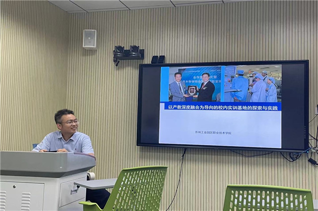 校企合作一直是苏州工业园区职业技术学院的特色,来自电子工程系朱立军教授《以产教深度融合为导向的校内实训基地的探索与实践》给后期实训基地的建设带来了新的思考。结合学院特色和工业园区的优势,分层次、分等级建设六种校区企合作模式:AMD模式、BOSCH形式、CHARMLLES形式、PHLIPS模式、SAMSUNG模式、EVTE模式。尤其是与企业联合开发核心课程——“企业标准入课程”,开展OBE教学给参训老师留下深刻印象,此外朱教授还从自身经验角度就如何积累和申报成果奖给出了建议,受益良多。