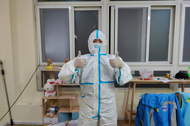 侯家伟,物联应用技术192班:在南京市六合区冶山社区做志愿者。工作是辅助社工和医生做核酸检测,帮忙测温,登记信息,录入信息,维持现场秩序以及打扫卫生。我愿意尽我所能让这疫情早日结束!穿上防护服的那一刻,我觉得无上光荣!