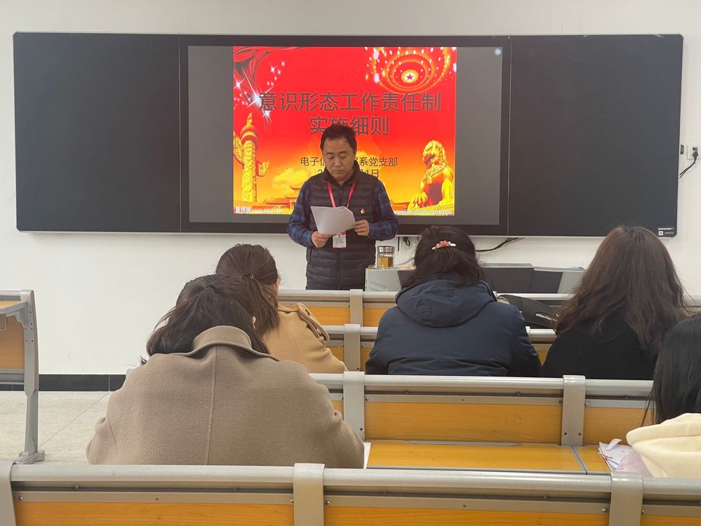 2022年3月1日,电子工程系党支部召开了新学期第一次政治学习活动,本次活动由吴伟萍书记主持,支部全体教师参加。