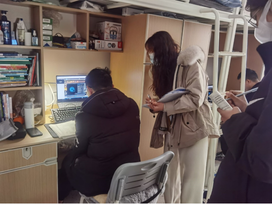 活动开始,男生在电子工程系心理气象站副站长孙延岭的带领下前往男生宿舍,女生由练童谣同学带领前往女生宿舍,对相应楼层进行走访,在不打扰同学们上课的同时,心理气象站干事以及各班心理委员们对同学们在线上学习期间存在的一些问题进行了细致的询问记录,并对部分问题进行了疏导解答。
