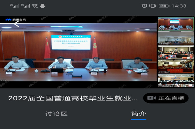 通过学习本次视频会议,大家充分认识到就业工作的重要性和当前就业形势的严峻性,要学习和领会第一次和第二次调度会会议精神和学校的就业工作要求,在就业过程中:一要领会会议精神、明确新任务、打开新思路;二要凝心聚力,真抓实干;三要精准掌握学生就业情况,做好服务工作;同时,在工作过程中严格遵守“四不准”要求,及时做好就业状况“日报、周报、月报”工作,严防就业工作注水和虚假现象,做到“零容忍”,扎实做好2022届毕业生就业创业工作。以优异成绩迎接党的二十大召开!