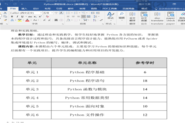 制定了教学目标,通过理论和实践教学,使学生较好地掌握 Python各方面的知识,掌握基本的程序设计过程和技巧,具备高级语言程序设计能力,能熟练应用PyCharm或者Spider集成环境进行Python的编写、编译、调试和测试。