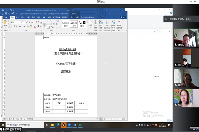 电子技术教研室全体成员于2022年4月19日开展了下学期新开课程《Python程序设计》课程标准制定的研讨活动。