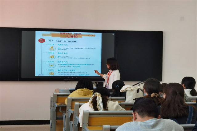 2022年5月18日下午,电子工程系党支部在思学楼305举行学习会,围绕“四个全面”战略布局进行专题学习。本次学习会由支部青年委员王林林同志主讲,支部书记吴伟萍以及全体教职工参加了此次学习会。