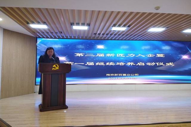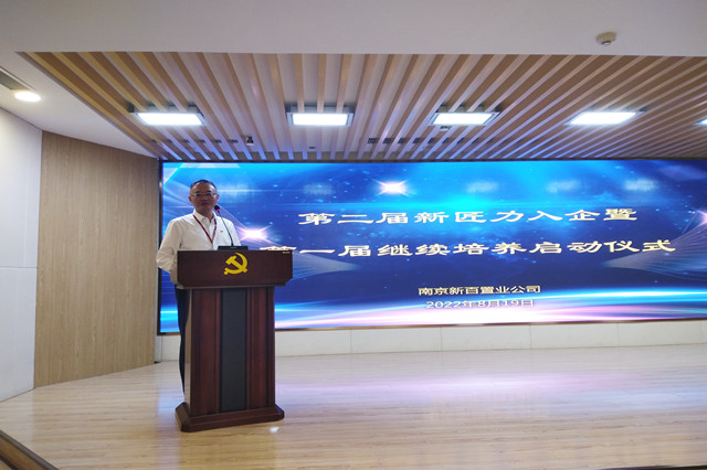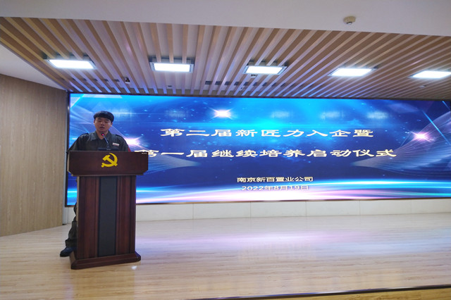 雷松楼副总经理代表集团对新入职大学生加入新百大家庭表示欢迎,新百是个有传承有情怀有温度的企业,希望同学们在新百尽情施展才华,积极参加公司组织的各项活动,同时要心怀感恩之心,树立理想,勤奋吃苦,积极进取,共同建设美好家园。