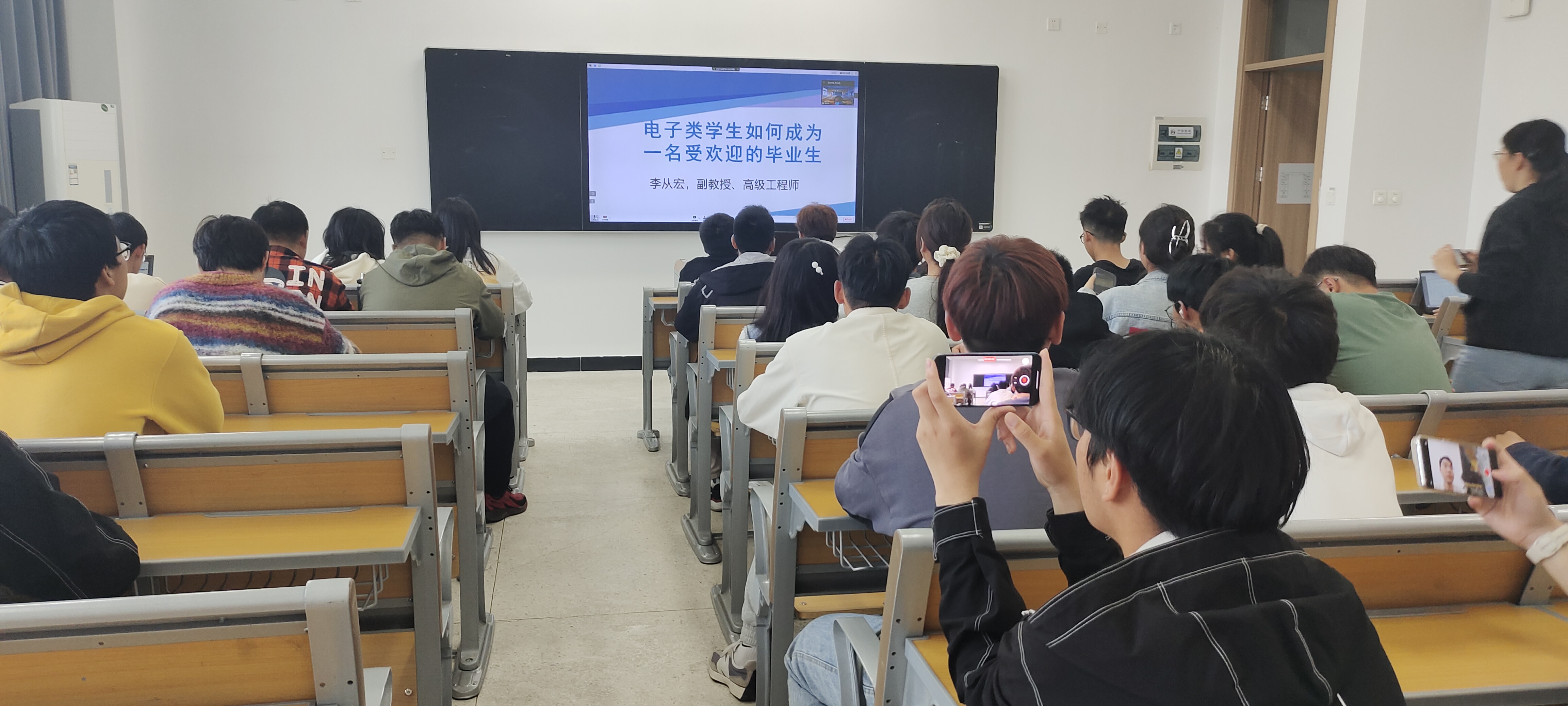 为促进电子工程系电子信息工程技术专业学生专业成长,进一步加强学生的积极主动性,提升学生的专业素养和专业技能,2022年11月8日下午,在郭晓凤教师的主持下,教授李从宏为电子工程系电信专业22级学生进行了“电子类学生如何成为一名受欢迎的毕业生”讲座。
