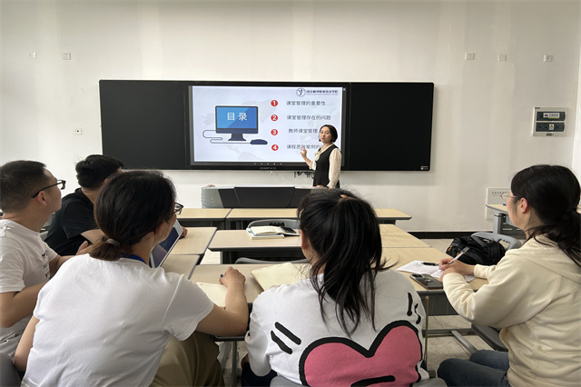 首先由主持人梁昕老师分析了课堂管理的重要性,大家了解到作为高校教师,必须要掌握相应有效的课堂管理方法,以提高课堂教学质量,才能有效地促进学生专业知识的掌握、专业能力的提升和综合素质的培养。其次主持人提出了课堂管理中存在的一些问题:存在部分教师课堂管理不严格,不遵守教学规范,课堂上与学生互动少等问题。同时也分析了现在学生常见的课堂不文明现象,如上课迟到,上课玩手机,做与课堂学习无关的事情等。