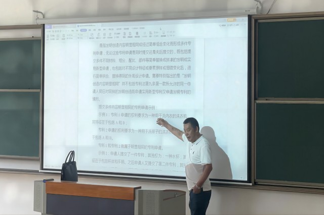 首先,汤老师为大家讲解了什么是非正常专利申请和非正常专利申请的认定。他指出现阶段专利申请原则,着重介绍了什么是非正常专利;其次,汤老师分析了国家打击非正常专利申请的背景及其必要性,并为同学们列举了非正常专利申请的典型案例,现场演示了优质的专利交底书并做出了点评,通过交底书的撰写演示使同学们更好的认识到撰写专利交底书严谨和务实的必要性;最后,汤老师为同学们介绍了如何有效避免非正常专利申请以及如何有效规避被撤回和被驳回的情况发生,引导同学们应该在现实中创新,倡导同学们专利要贴近专业,贴近实际。